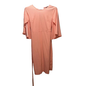SHEIN Peach Flutter Sleeve Belted Midi Dress Women’s Size L V-Neck Party
