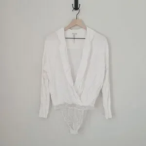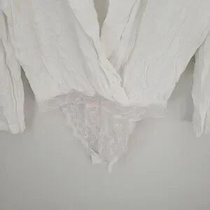 Free People Elsa Bodysuit Top Cream Surplice Neck Size Small