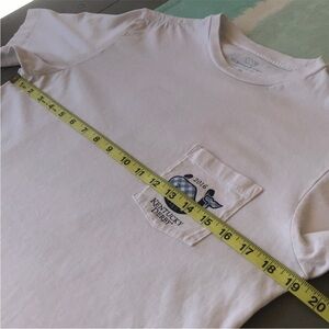 Vineyard Vines, Short sleeve, Crewneck graphic t-shirt. 2016 142 Kentucky Derby on front chest pocket with blue gingham check whale & horse shoe. Back bow tie graphic. The official style of the Kentucky Derby. Size XS. See photos for measurements to ensure fit. Used condition as front has two faint stains shown in last photo.