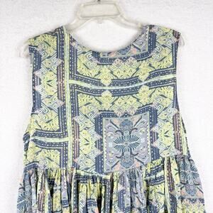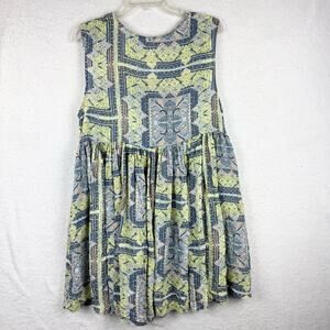 Free People Take Me to Thailand Sleeveless Boho Babydoll Dress Fog Combo Sz M