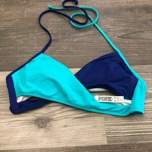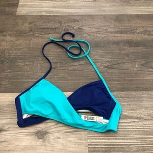 PINK Victoria's Secret Women's Blue and Teal Halter Bikini Top Medium