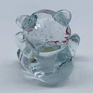 Vintage Art Glass Clear Bubbled Teddy Bear With Present Paperweight Figurine 3”T.