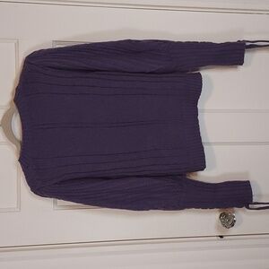 525 America Cable Knit Crop Tie Sleeve Sweater Purple