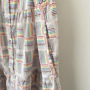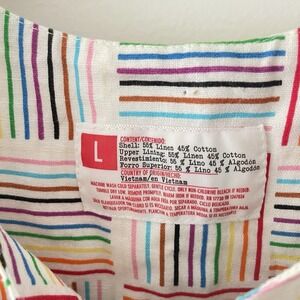 Linen Cotton Rainbow Stripe Sundress Button Front Boho Coastal Pockets L
