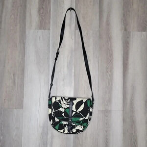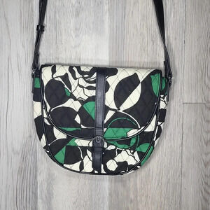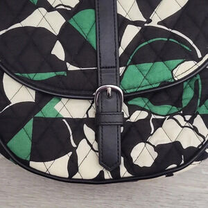 Vera Bradley Imperial Rose Green Black White Slim Saddle Bag Crossbody