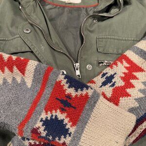 Thread & Supply Womens Hooded Jacket --Military Army Green Aztec --Size Small