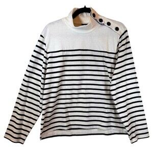 J Crew Sweater Size L Striped Navy Ivory Cotton Pullover Nautical Coastal Preppy