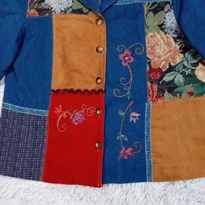 Vintage Koret Womens Jacket Blazer Blue Medium Lined Button Up Career Floral