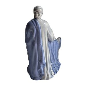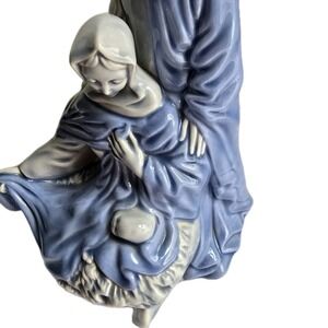 The Vintage Christmas Nativity set by Atlantic Mold depicts the Holy Family, including Joseph, Mary, and Jesus. Handmade in 1981 in the United States, this ceramic set features a classic white and blue color scheme. Standing at 11 inches tall, this religious-themed Nativity scene is a unique addition to any Christmas decor collection. Made with attention to detail, this vintage set captures the essence of the holiday season with its timeless design.