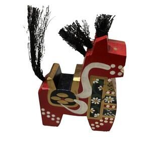 Vintage Handmade Set of 2 Japanese Yawata-Uma Wooden Horses Hachinohe Sculpture