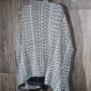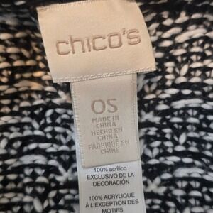 Keywords: Chico's, Cardigan, Sweater Jacket, Open Front, Knit, Black and White, Gold Accents, One Size, Womens, Jacket, Outerwear, Contemporary, Fashion