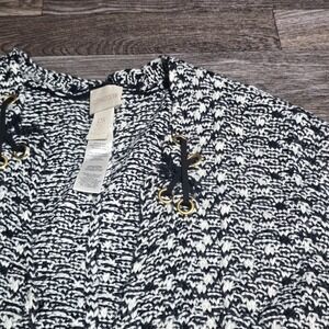 Chicos Open Front Knit Cardigan Sweater Jacket Gold Accents Black White OS