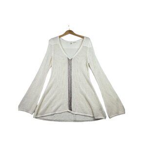 Anthropologie Moth Pointelle Knit Long Sleeve Tunic size Large Petite Cream