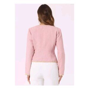 Allegra K Womens XS Pink Plaid Tweed Blazer Long Sleeve Open Front Work Office