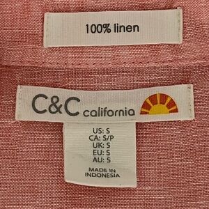 C&C California Pink relaxed fit Linen Collared Pullover all season Blouse top