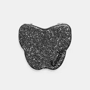 NWT Coach Black Silver Glitter Butterfly Compact Dual Sided Mirror