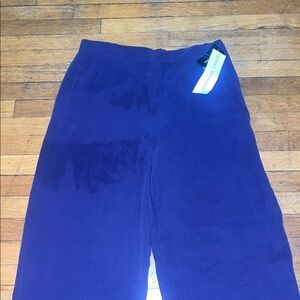 This is a vintage pair of NWT plus size or curvy fit, women’s 100% silk pants. A classic pull-on style trousers in an eggplant purple color named dark plum throughout. These have hand pockets, a zippered fly waistband with belt loops, and are a full length, baggy or wide leg fit. Great pair of high rise pants for many different occasions!