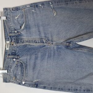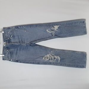 Features: Distressed, Button fly closureLight fading and whiskering along front, Intentionally ripped areas throughout