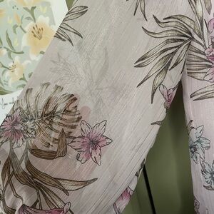 Chic off-shoulder blouse with floral design. Features pink and green hues. Perfect for stylish outings. This blouse is so pretty!!! A light shimmer hue, and 3/4 sheer sleeves. Blouse is lightly lined. White House Black Market Sz S