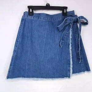 Madewell Raw-Hem Mini Wrap Jean Skirt in Cardiff Wash Size 6 Blue Denim