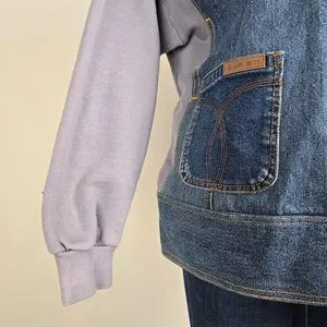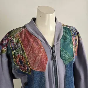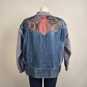 Vintage Handmade Denim Patchwork Zip Up Jacket Size L/XL