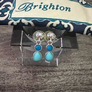 Brighton Elegant silver drop earrings featuring stunning blue stones. Perfect for adding a touch of sophistication to any outfit.