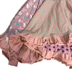 Charming dress with pink and yellow patterns. Ideal for a cheerful style. Unstitched, but easy fix along waist.