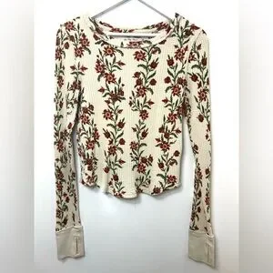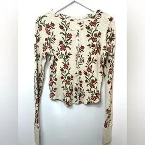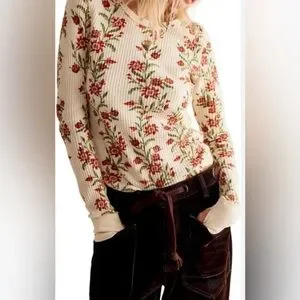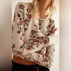 Chic floral design. Soft waffle knit. Perfect for layering.