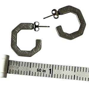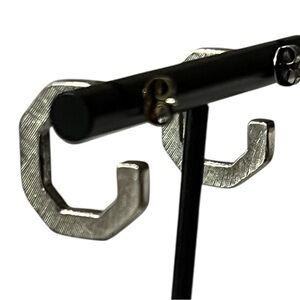 Introducing the Silver Geometric “C” Shape Hoop Earrings, a striking blend of modern design and timeless elegance. These unique earrings feature a bold “C” shape that adds a contemporary twist to the classic hoop style. The polished front edge reflects light beautifully, creating a stunning contrast against the textured cross-hatch sides, which add depth and visual interest.