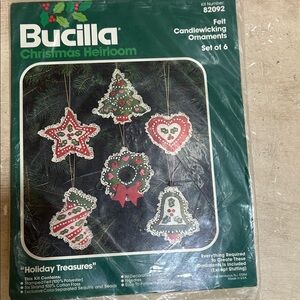 Decorate with Bucilla's festive felt ornaments. Includes star, tree, wreath, stocking, and bell designs. Perfect for holiday charm. Perfect for a touch of nostalgia package is sealed.