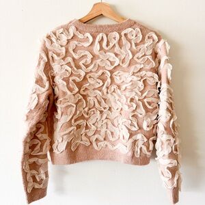 ZARA Blush Textured 3D Floral Appliqué Sweater Size Medium