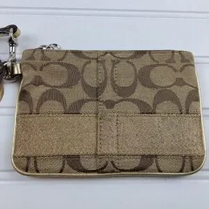 Coach Signature F41637 Gold Khaki Wristlet Pouch Clutch Wallet