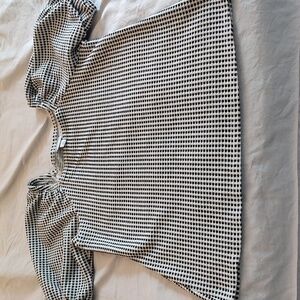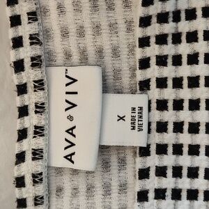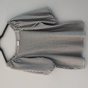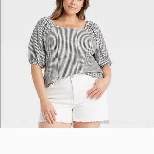 Ava + Viv Top Size X Square Neck Short Puff Sleeve Black & White Casual Coquette