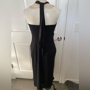 Black with tie around neck. Open shoulder . Backless . Jeweled design on front . Slip on no zipper. Like new .