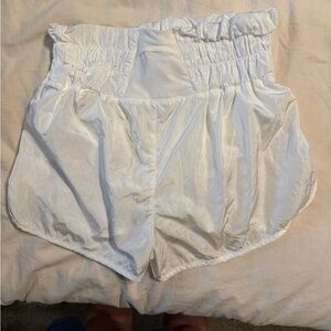 Stylish white women's shorts with a ruffled waistband for a chic look. Perfect for casual outings.