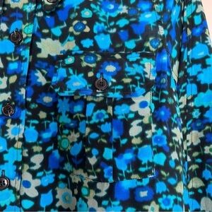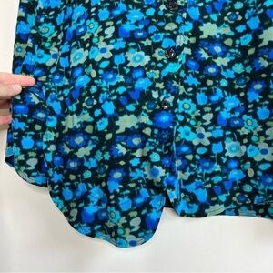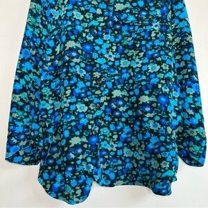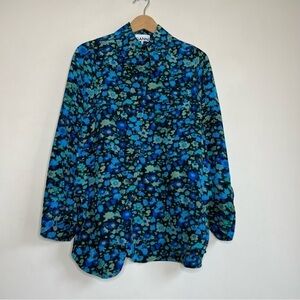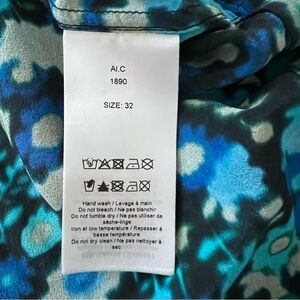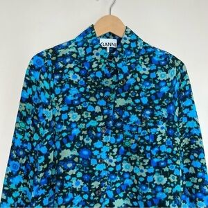Beautiful Ganni top in a blue-green floral print (called "Azure Blue").