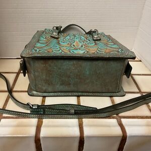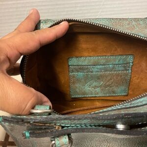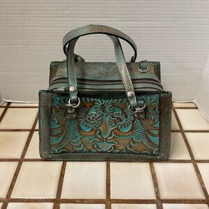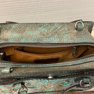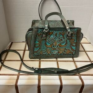 Patricia Nash Bag Satchel Crossbody Detachable Strap Turquoise Embossed Purse