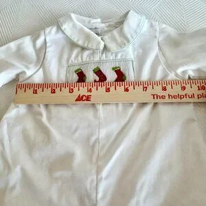 Petit Ami Christmas Smocked Romper 6 Months White Holiday Outfit Stockings