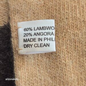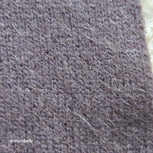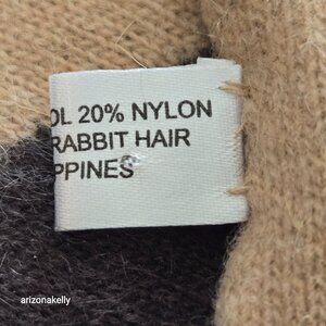 Appears to be new--no signs of wear. No damage, no odor. It's got angora in the mix, so there are visible hairs.