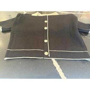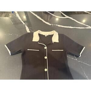 Beautiful black knit shirt dress with contrast cream trim. Item is in overall VGUC. Some discoloration on the cream collar. Pls zoom in. Have taken images to depict. Size M.