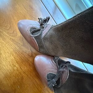 Victoria’s Secret - takes you down the garden path. Elegant brown suede knee-high boots featuring a beautiful floral design. Gorgeous boots. Heel is about 3”. Velvet-lined inside. Great condition. Worn once.