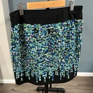Ann Taylor Black Skirt with Blue and Green Sequins
