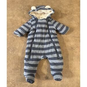 Baby Gap Winter Sherpa Lined Striped Snowsuit in Blue, Size 0-3Months