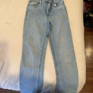 Classic straight leg jeans in light blue. Perfect for casual wear. Timeless and versatile design.