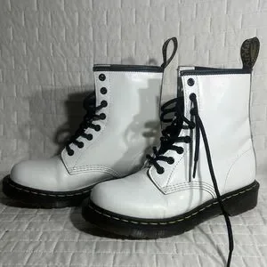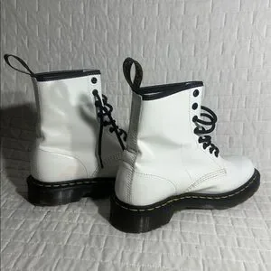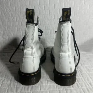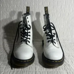 Dr. Martens 1460 8 Eye White Combat Boots with Black Laces. Please see photos