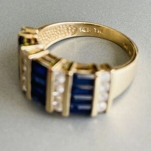 14k Gold Created Sapphire & White Topaz 4 Row Geometric Cocktail Ring WS Signed