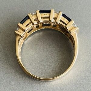 Estate 14K Gold Sapphire & White Topaz 4 Row Geometric Cocktail Ring Sig…