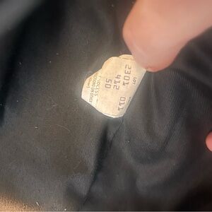 Ideal sleeve zippers, YKK front zipper, pocket zippers ring pulls. Original white tag with manufacturing information, model & size