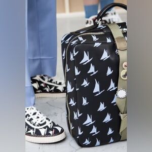 MARNI Spring/Summer 2018 Unisex Blue Leather Sailboat Patterned Satchel Bag