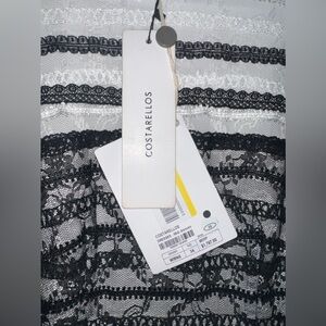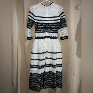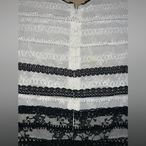 This elegant black and white lace dress is perfect for any occasion. The intricate lace design adds a touch of sophistication. Ideal for both formal and casual events.
